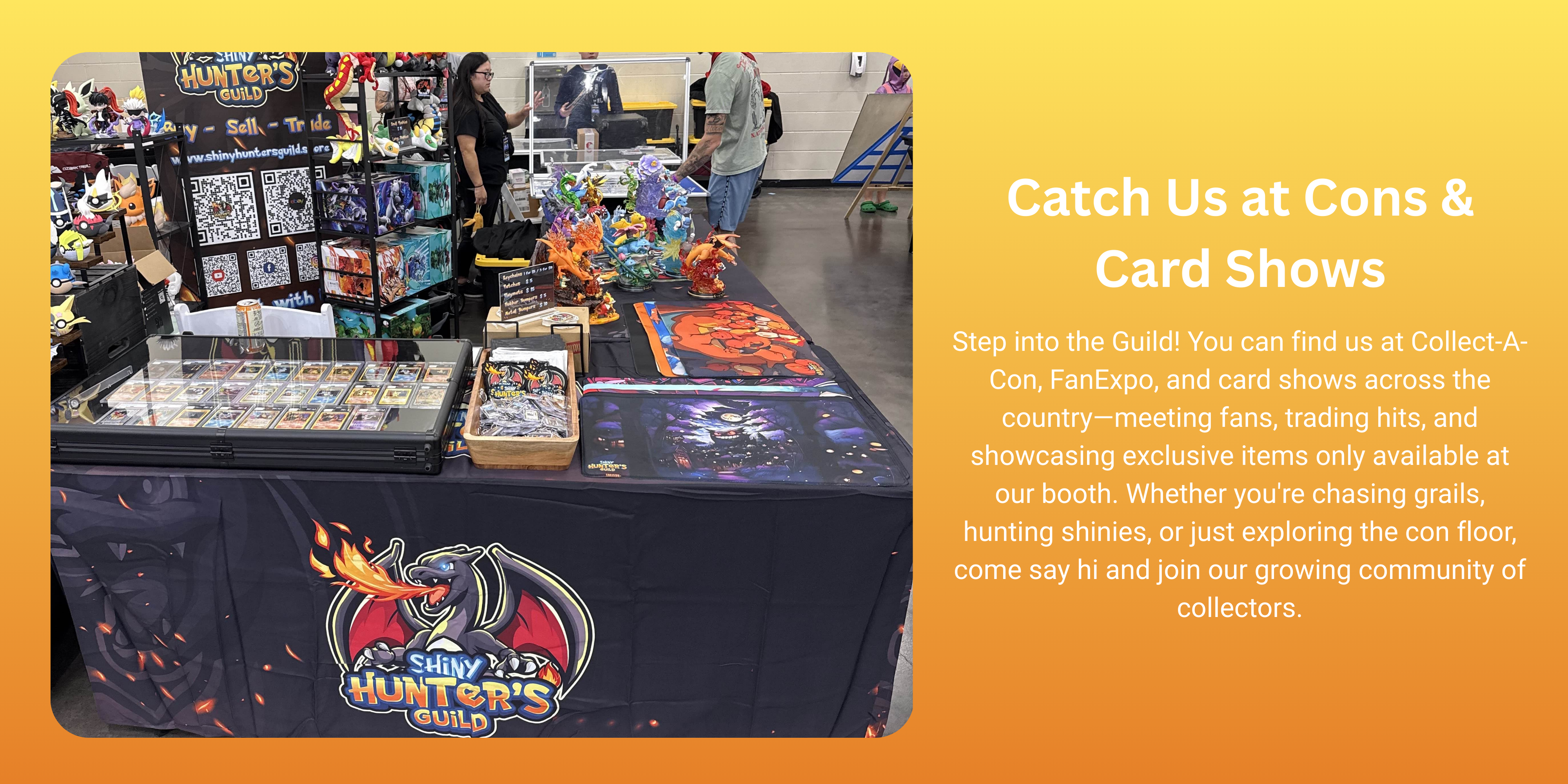 Yes! When space allows, we buy, sell, and trade at most events. Bring your binders, slabs, and collections — the Guild loves a good trade.